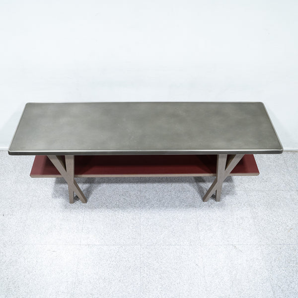 天板:ステンレススチール フレーム:ウッド 張地:レザー(レッド)